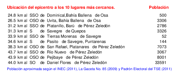 Lugares más cercanos al epicentro