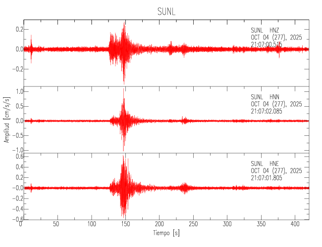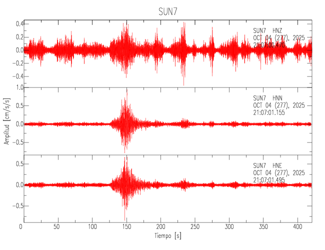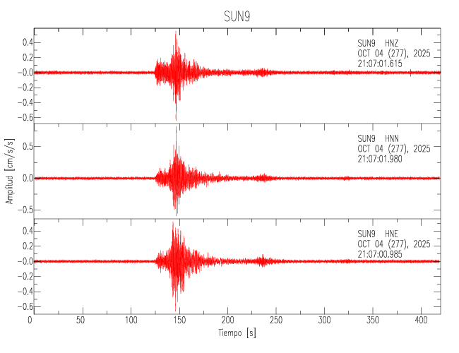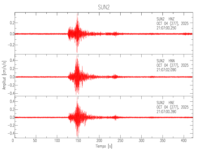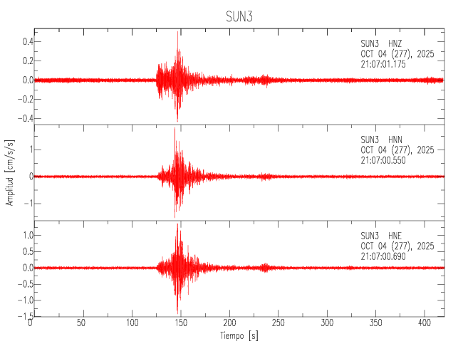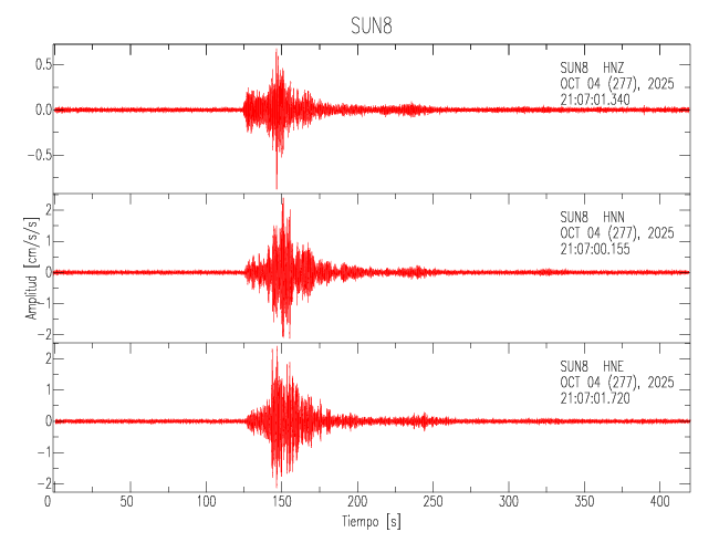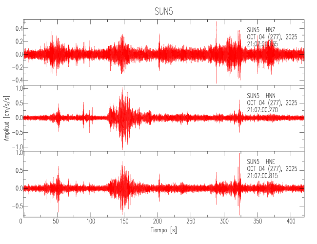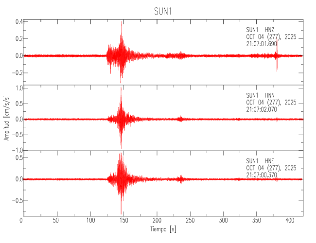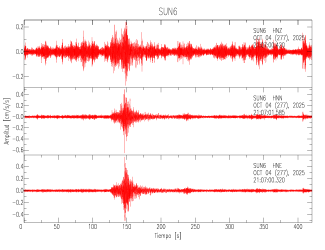 Gráficos de las trazas de aceleración en las 3 componentes: LONGITUDINAL, TRANSVERSAL y VERTICAL de cada uno de los sitios de la Sede Central.