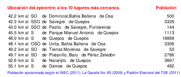 Lugares más cercanos al epicentro