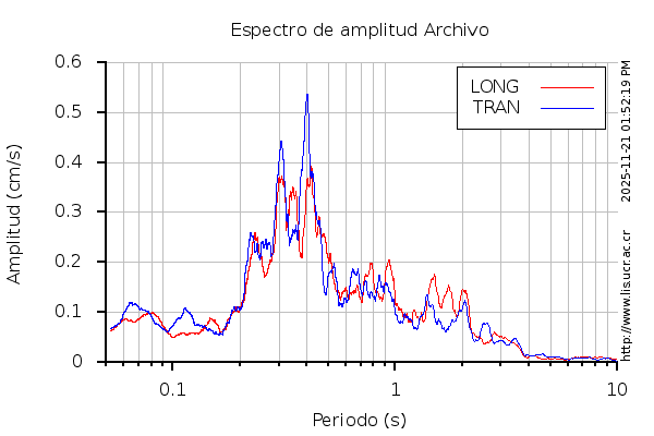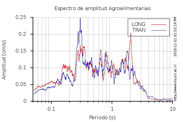 Se calculan los espectros de la amplitud de Fourier para las dos componentes horizontales del movimiento del suelo.