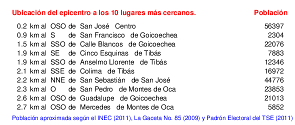 Lugares más cercanos al epicentro