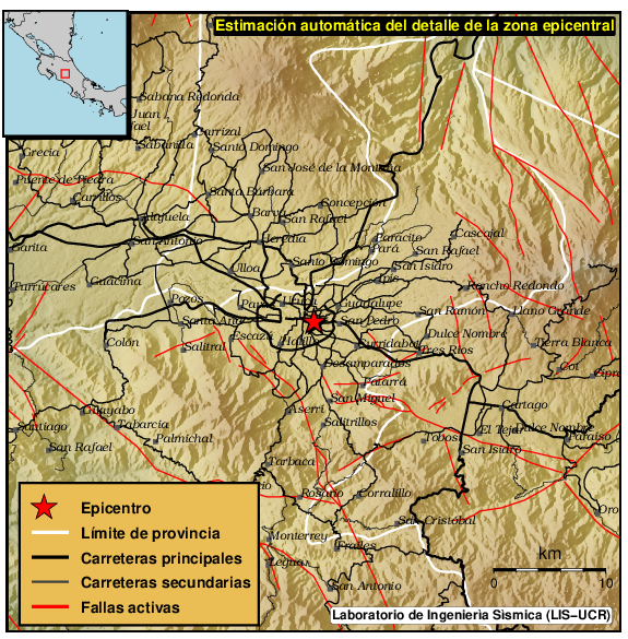 Detalle de la zona epicentral