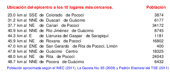 Lugares más cercanos al epicentro