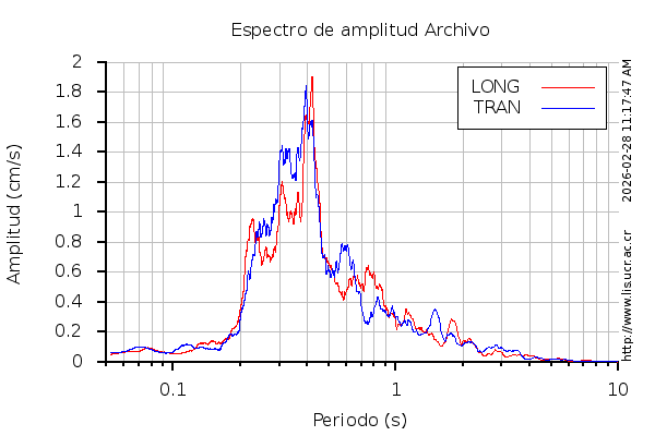 Se calculan los espectros de la amplitud de Fourier para las dos componentes horizontales del movimiento del suelo.