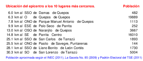 Lugares más cercanos al epicentro