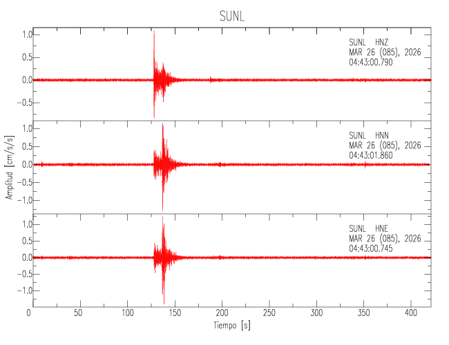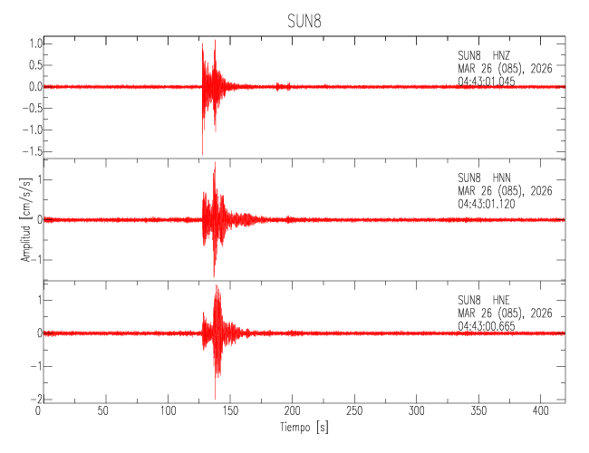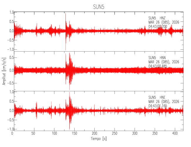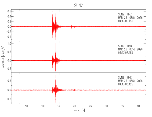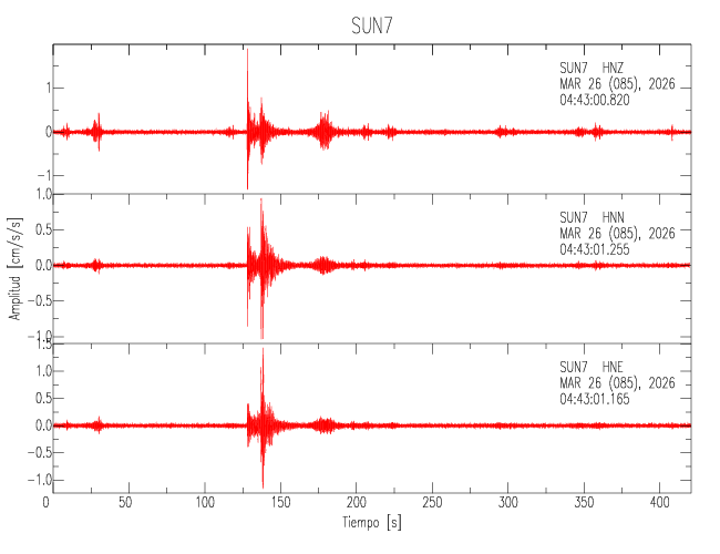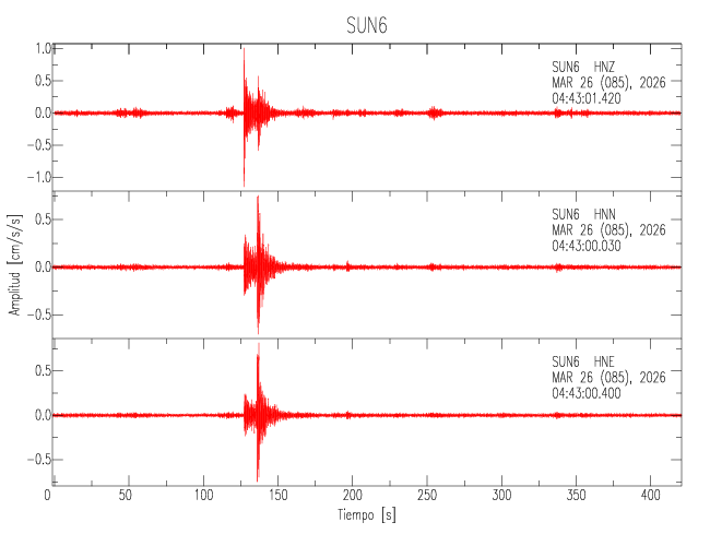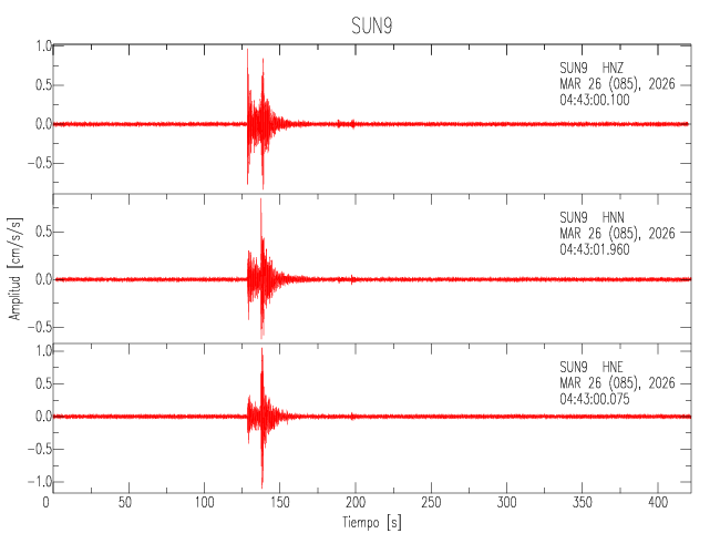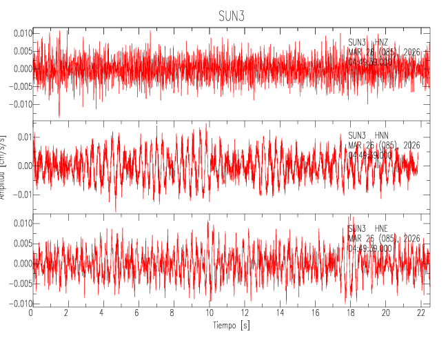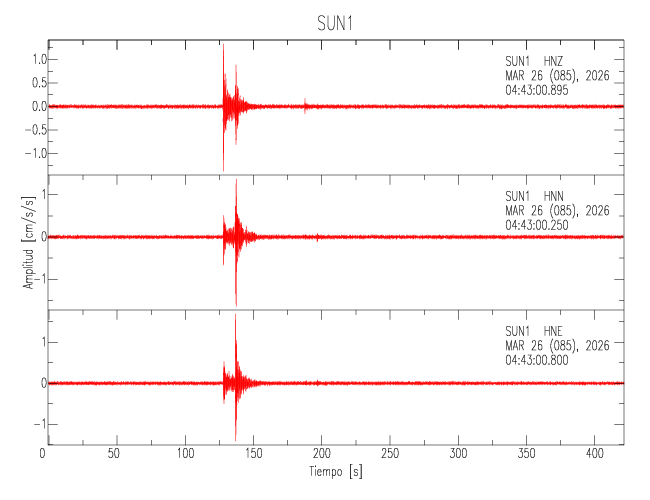 Gráficos de las trazas de aceleración en las 3 componentes: LONGITUDINAL, TRANSVERSAL y VERTICAL de cada uno de los sitios de la Sede Central.
