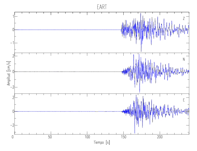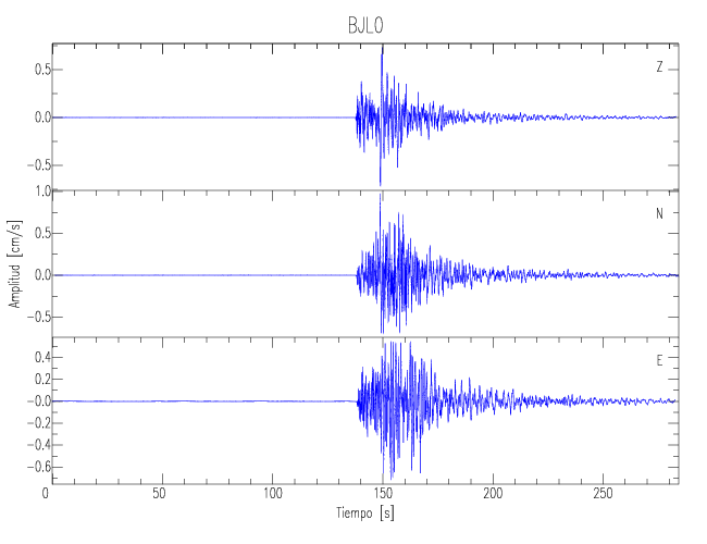 Los registros de velocidad se obtienen de la integración de los datos de aceleración. Esta tabla contiene los valores de velocidad máxima (PGV por sus siglas en inglés) para cada componente en cm/s. Las estaciones se listan en orden alfabético y corresponden a los sitios en que el nivel de aceleración fue superior a los 5 cm/s2.