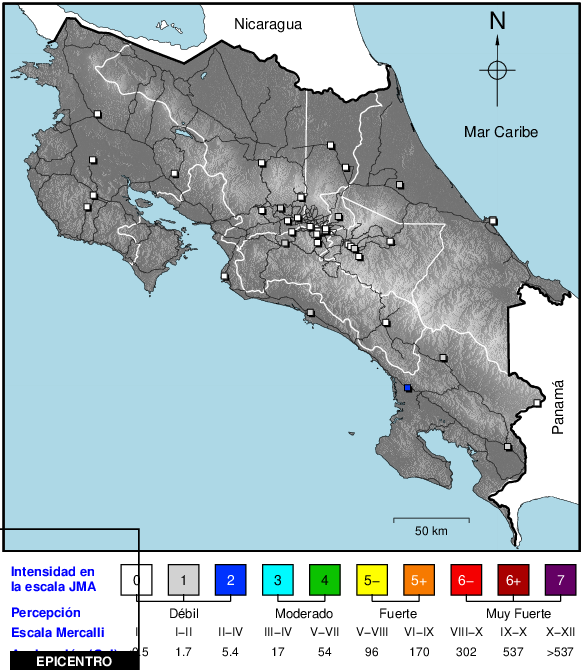 La escala de intensidad sísmica desarrollada por la Agencia Meteorológica de Japón (JMA) describe el grado de agitación en un punto de la superficie terrestre. Se calcula a partir de las tres componentes de un registro de aceleración y de la duración de la sacudida. La escala varía de 0 a 7, donde 0 es un movimiento imperceptible y 7 corresponde a un terremoto destructivo.