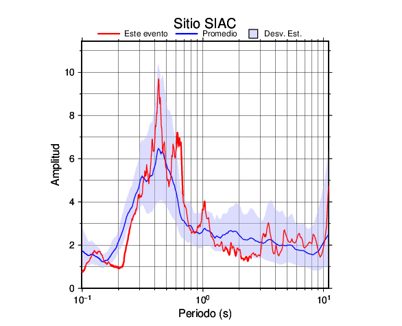 Los resultados que se presentan aquí fueron obtenidos luego de dividir las componentes horizontales entre la componente vertical (conocido como técnica H/V). Se grafica tanto el efecto de sitio del sismo registrado como el valor promedio en cada estación y su correspondiente desviación estándar.