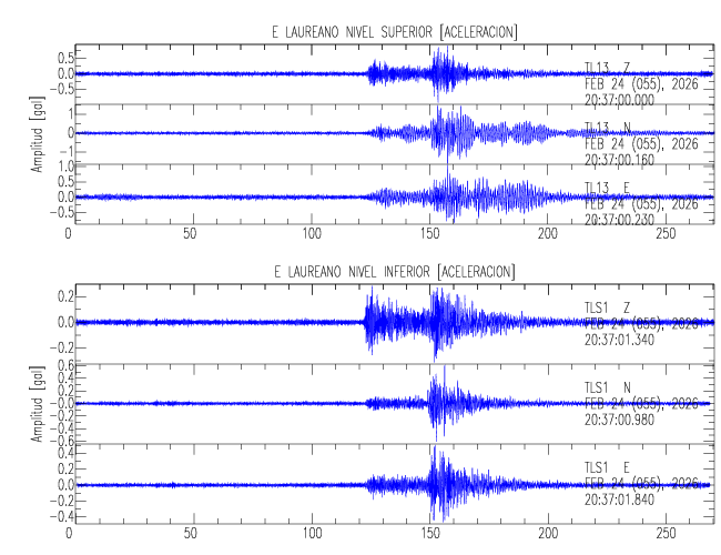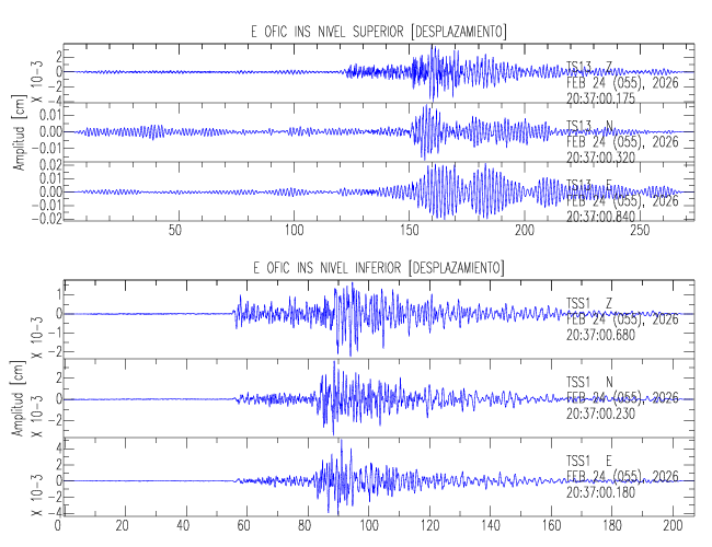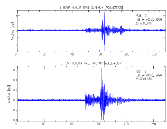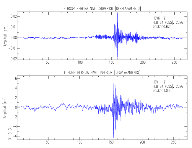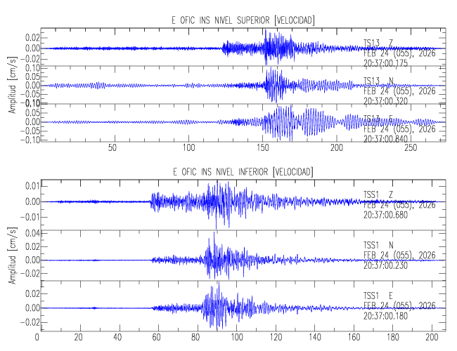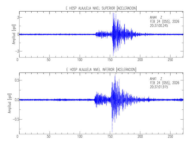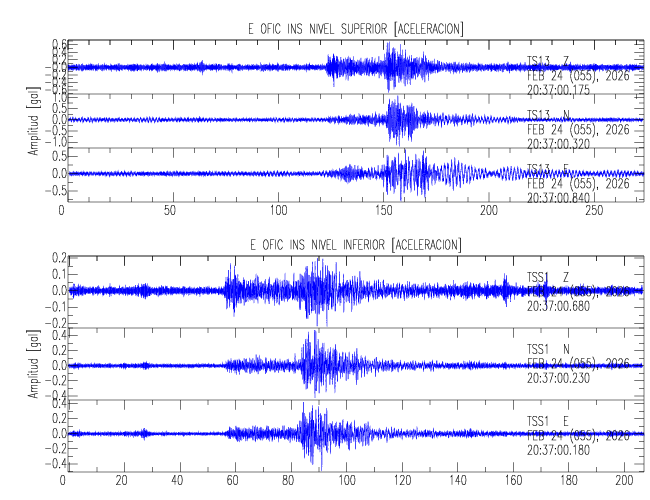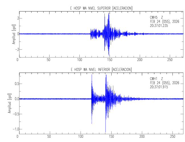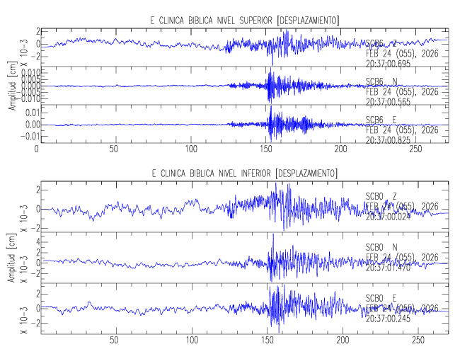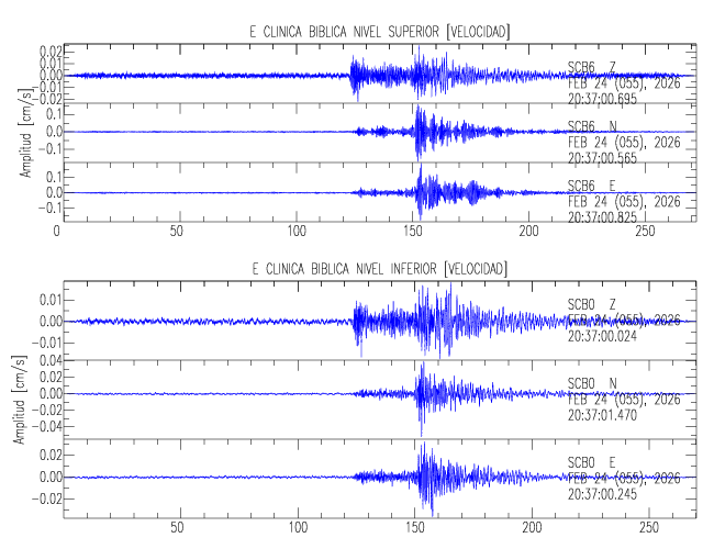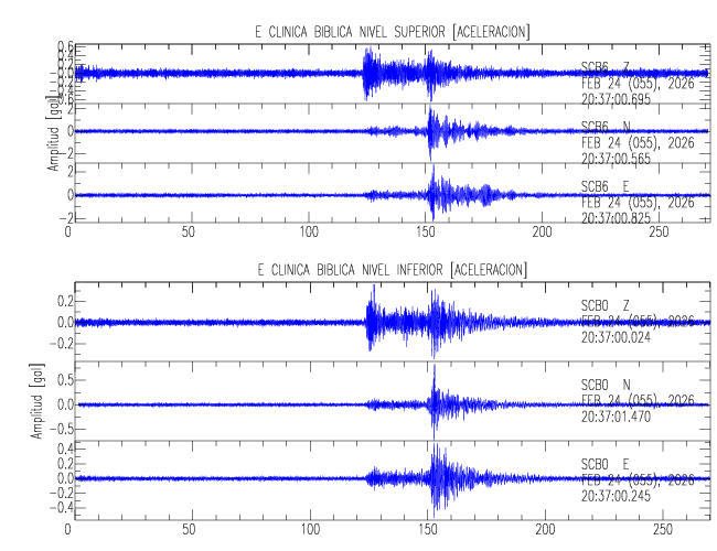 En esta sección se muestran los registros de aceleración (ac), velocidad (ve) y desplazamiento (de) de los niveles superior e inferior de varios edificios que se encuentran conectados al LIS ( http://www.estructuras.lis.ucr.ac.cr )