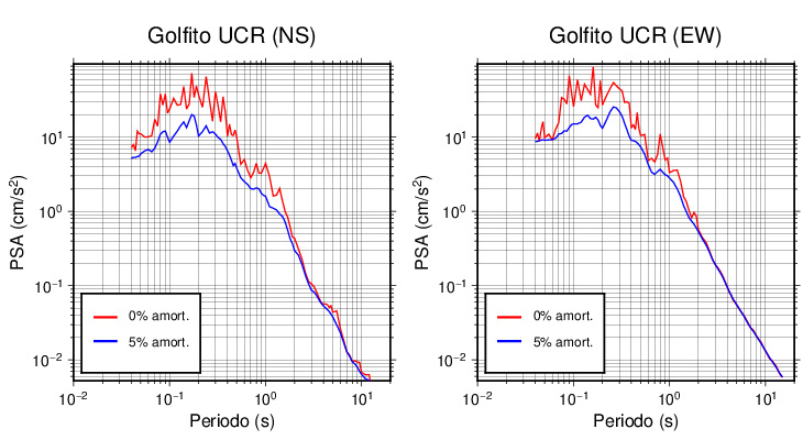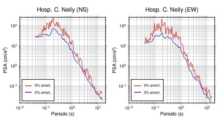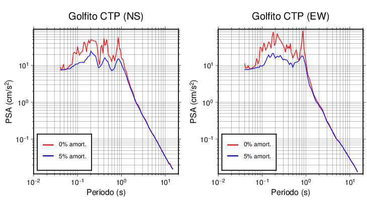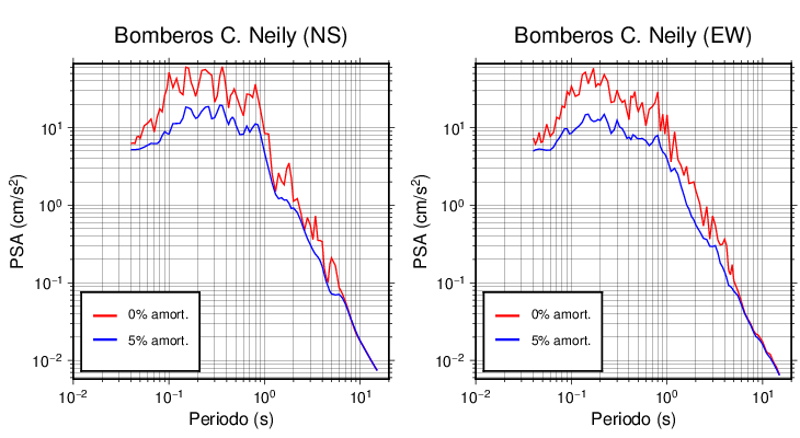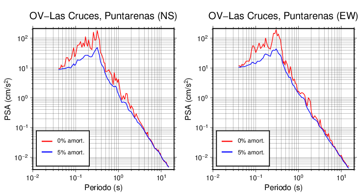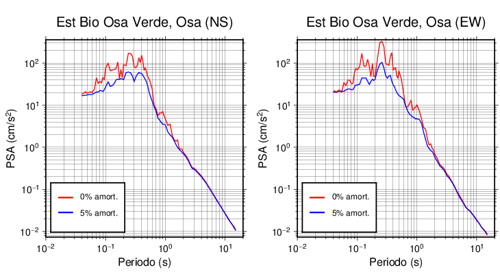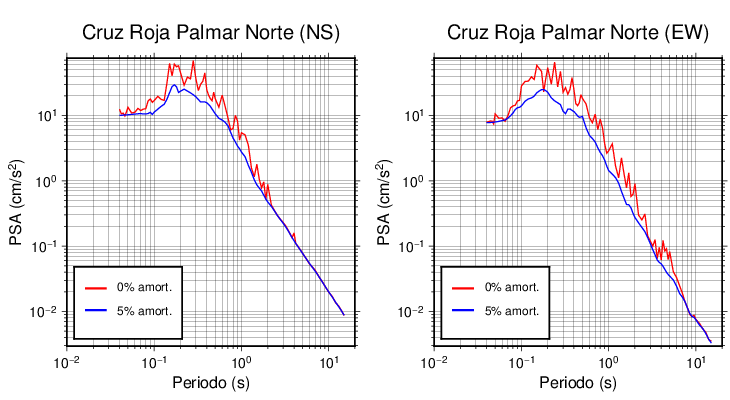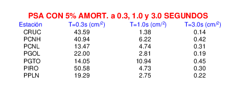 Esta tabla contiene los valores de PSA en cm/s2 calculados del espectro de respuesta con 5% de amortiguamiento a 1 segundo (se muestran los valores para aquellas estaciones que tuvieron un valor de aceleración superior a 5 cm/s2).