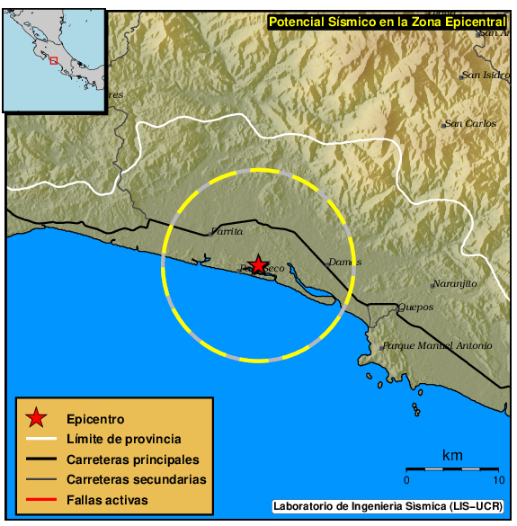 La zona donde ocurre este sismo comprende el Pacífico Central de Costa Rica, una zona bastante activa.