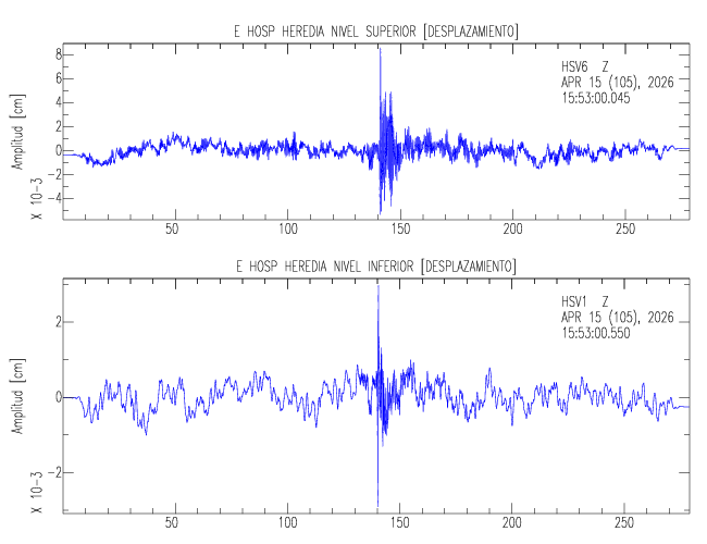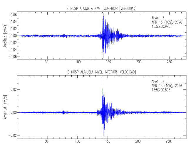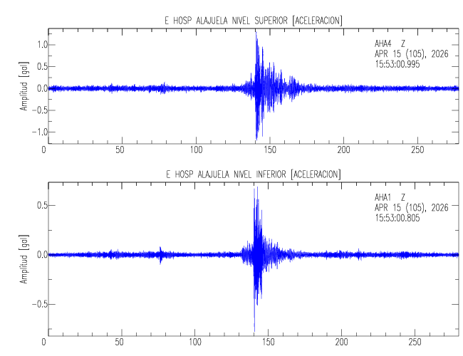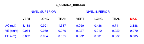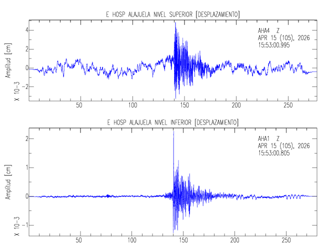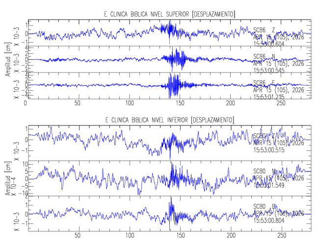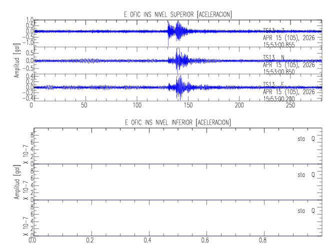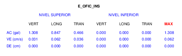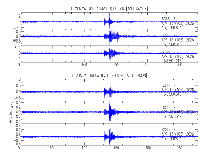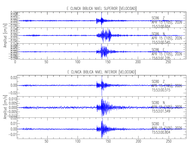 En esta sección se muestran los registros de aceleración (ac), velocidad (ve) y desplazamiento (de) de los niveles superior e inferior de varios edificios que se encuentran conectados al LIS ( http://www.estructuras.lis.ucr.ac.cr )