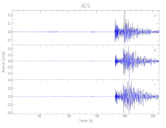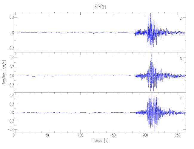 Los registros de velocidad se obtienen de la integración de los datos de aceleración. Esta tabla contiene los valores de velocidad máxima (PGV por sus siglas en inglés) para cada componente en cm/s. Las estaciones se listan en orden alfabético y corresponden a los sitios en que el nivel de aceleración fue superior a los 5 cm/s2.