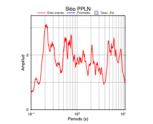 Los resultados que se presentan aquí fueron obtenidos luego de dividir las componentes horizontales entre la componente vertical (conocido como técnica H/V). Se grafica tanto el efecto de sitio del sismo registrado como el valor promedio en cada estación y su correspondiente desviación estándar.