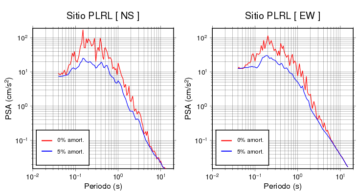 Las construcciones civiles generalmente poseen niveles de amortiguamiento en el rango de 2 a 7%. Para edificaciones normales, se asume que es de 5%. Esta tabla contiene los valores de PSA en cm/s2 calculados del espectro de respuesta con 5% de amortiguamiento a 1 segundo (se muestran los valores para aquellas estaciones que tuvieron un valor de aceleración superior a 5 cm/s2).