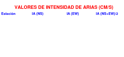 En esta sección se muestra el cáculo de la IA para la componente norte-sur (NS) y este-oeste (EW) de los registros de aceleración que tuvieron valores superiores a los 5 cm/s2, así como el valor total de esta que corresponde al promedio de ambas componentes horizontales.