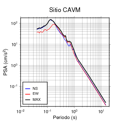 Los espectros de respuesta máxima siempre serán mayores o iguales a los espectros en las direcciones N-S y E-O. Se muestra la comparación para cada una de las estaciones en que se registró el evento.