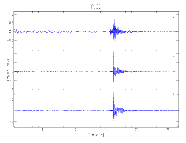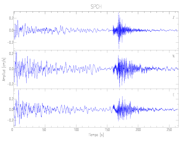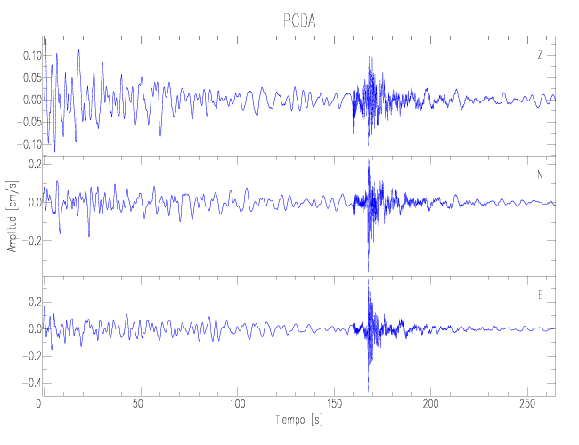 Los registros de velocidad se obtienen de la integración de los datos de aceleración. Esta tabla contiene los valores de velocidad máxima (PGV por sus siglas en inglés) para cada componente en cm/s. Las estaciones se listan en orden alfabético y corresponden a los sitios en que el nivel de aceleración fue superior a los 5 cm/s2.