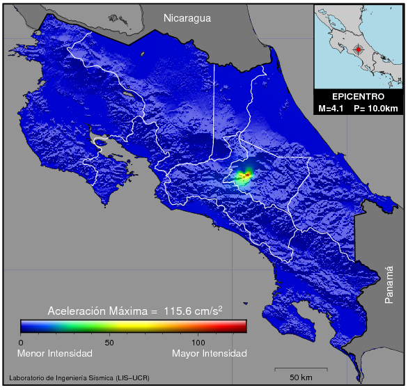 Los datos de aceleración máxima registrada se interpolan para obtener un mapa de isoaceleraciones. En el se puede ver la tendencia general de la amplificación de todo el país a partir del lugar en que el movimiento fue más intenso.