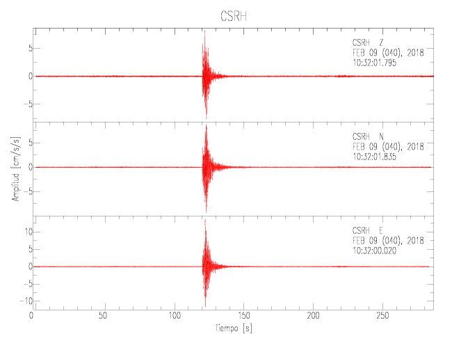 La siguiente tabla muestra los datos de aceleración máxima para cada componente en porcentaje de la aceleración de la gravedad (%g). Estos se obtienen dividiendo el valor del PGA registrado por 980 cm/s2 y multiplicándolo por 100. Las estaciones se listan en orden alfabético. Los valores de las últimas dos columnas corresponden a la componente radial y transversal.
