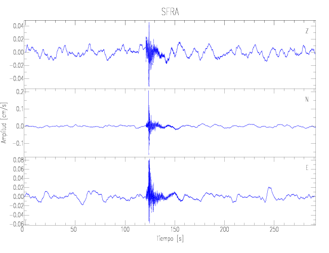 Los registros de velocidad se obtienen de la integración de los datos de aceleración. Esta tabla contiene los valores de velocidad máxima (PGV por sus siglas en inglés) para cada componente en cm/s. Las estaciones se listan en orden alfabético y corresponden a los sitios en que el nivel de aceleración fue superior a los 5 cm/s2.