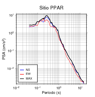 Los espectros de respuesta máxima siempre serán mayores o iguales a los espectros en las direcciones N-S y E-O. Se muestra la comparación para cada una de las estaciones en que se registró el evento.