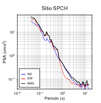 Los espectros de respuesta máxima siempre serán mayores o iguales a los espectros en las direcciones N-S y E-O. Se muestra la comparación para cada una de las estaciones en que se registró el evento.