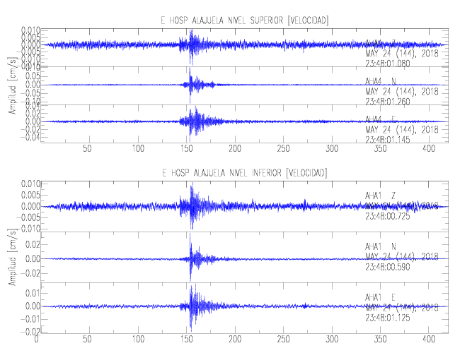 En esta sección se muestran los registros de aceleración (ac), velocidad (ve) y desplazamiento (de) de los niveles superior e inferior de varios edificios que se encuentran conectados al LIS ( http://www.estructuras.lis.ucr.ac.cr )