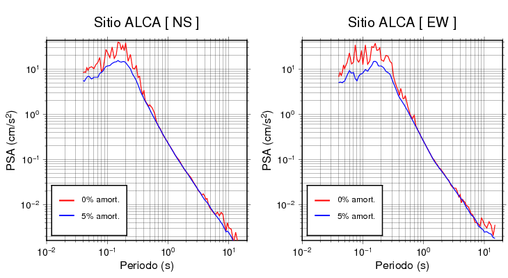 Las construcciones civiles generalmente poseen niveles de amortiguamiento en el rango de 2 a 7%. Para edificaciones normales, se asume que es de 5%. Esta tabla contiene los valores de PSA en cm/s2 calculados del espectro de respuesta con 5% de amortiguamiento a 1 segundo (se muestran los valores para aquellas estaciones que tuvieron un valor de aceleración superior a 5 cm/s2).