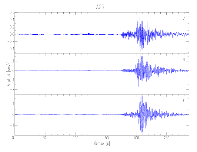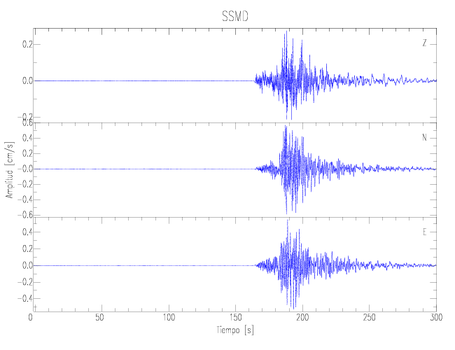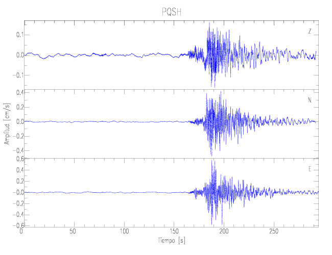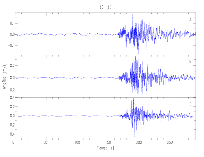 Los registros de velocidad se obtienen de la integración de los datos de aceleración. Esta tabla contiene los valores de velocidad máxima (PGV por sus siglas en inglés) para cada componente en cm/s. Las estaciones se listan en orden alfabético y corresponden a los sitios en que el nivel de aceleración fue superior a los 5 cm/s2.