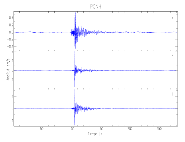 Los registros de velocidad se obtienen de la integración de los datos de aceleración. Esta tabla contiene los valores de velocidad máxima (PGV por sus siglas en inglés) para cada componente en cm/s. Las estaciones se listan en orden alfabético y corresponden a los sitios en que el nivel de aceleración fue superior a los 5 cm/s2.