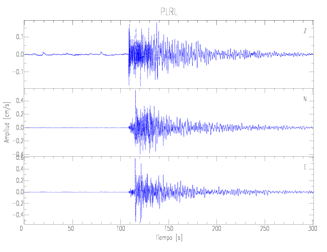 Los registros de velocidad se obtienen de la integración de los datos de aceleración. Esta tabla contiene los valores de velocidad máxima (PGV por sus siglas en inglés) para cada componente en cm/s. Las estaciones se listan en orden alfabético y corresponden a los sitios en que el nivel de aceleración fue superior a los 5 cm/s2.