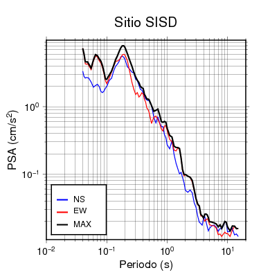 Los espectros de respuesta máxima siempre serán mayores o iguales a los espectros en las direcciones N-S y E-O. Se muestra la comparación para cada una de las estaciones en que se registró el evento.