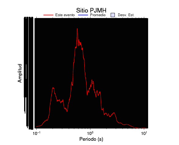 Los resultados que se presentan aquí fueron obtenidos luego de dividir las componentes horizontales entre la componente vertical (conocido como técnica H/V). Se grafica tanto el efecto de sitio del sismo registrado como el valor promedio en cada estación y su correspondiente desviación estándar.