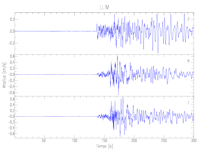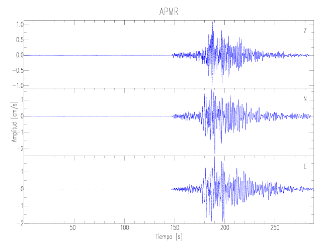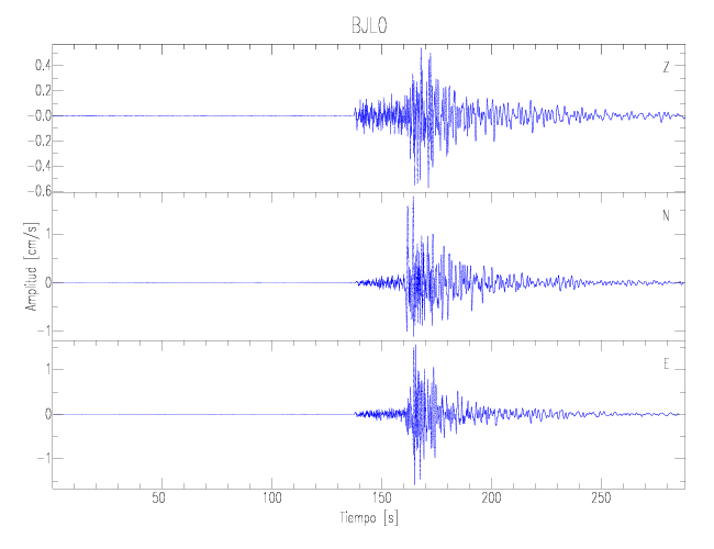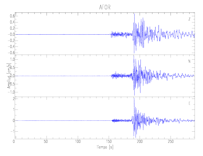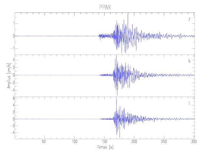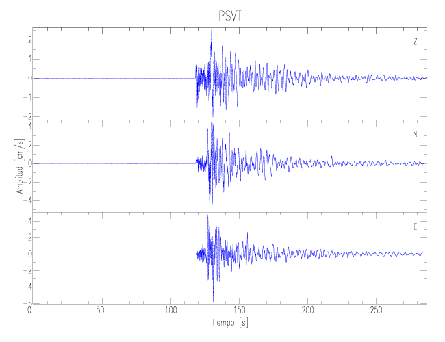 Los registros de velocidad se obtienen de la integración de los datos de aceleración. Esta tabla contiene los valores de velocidad máxima (PGV por sus siglas en inglés) para cada componente en cm/s. Las estaciones se listan en orden alfabético y corresponden a los sitios en que el nivel de aceleración fue superior a los 5 cm/s2.