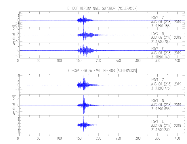 En esta sección se muestran los registros de aceleración (ac), velocidad (ve) y desplazamiento (de) de los niveles superior e inferior de varios edificios que se encuentran conectados al LIS ( http://www.estructuras.lis.ucr.ac.cr )