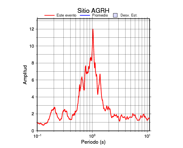 Los resultados que se presentan aquí fueron obtenidos luego de dividir las componentes horizontales entre la componente vertical (conocido como técnica H/V). Se grafica tanto el efecto de sitio del sismo registrado como el valor promedio en cada estación y su correspondiente desviación estándar.