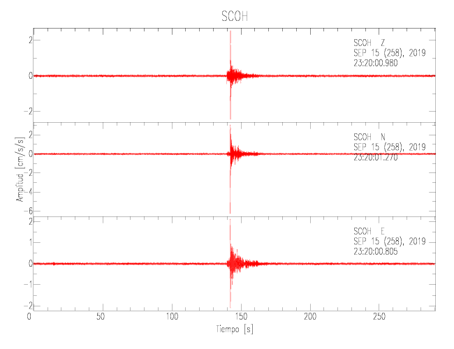 Gráficos de las componentes de aceleración para sitios con PGA > 5 cm/s2