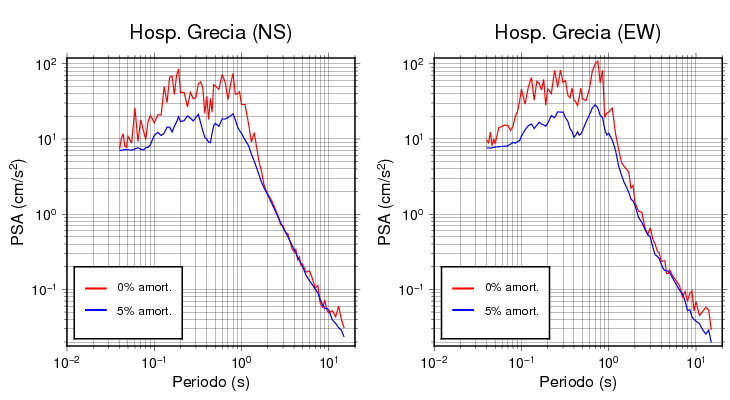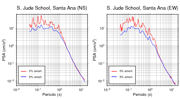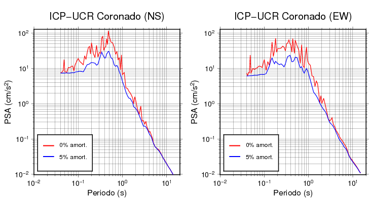 Las construcciones civiles generalmente poseen niveles de amortiguamiento en el rango de 2 a 7%. Para edificaciones normales, se asume que es de 5%. Esta tabla contiene los valores de PSA en cm/s2 calculados del espectro de respuesta con 5% de amortiguamiento a 1 segundo (se muestran los valores para aquellas estaciones que tuvieron un valor de aceleración superior a 5 cm/s2).