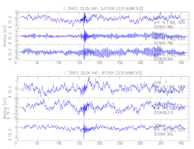 En esta sección se muestran los registros de aceleración (ac), velocidad (ve) y desplazamiento (de) de los niveles superior e inferior de varios edificios que se encuentran conectados al LIS ( http://www.estructuras.lis.ucr.ac.cr )