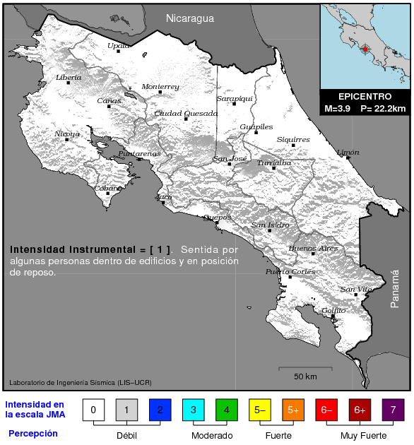 Magnitud: 3.9 (Mw) - Profundidad: 22.2 (km).