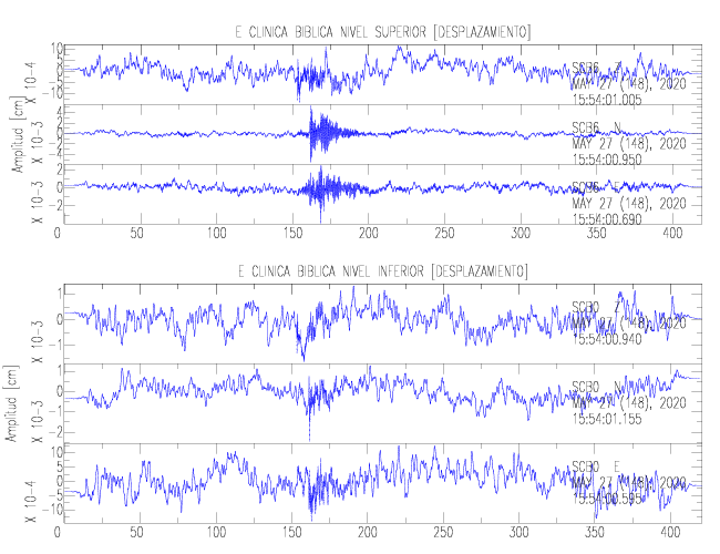 En esta sección se muestran los registros de aceleración (ac), velocidad (ve) y desplazamiento (de) de los niveles superior e inferior de varios edificios que se encuentran conectados al LIS ( http://www.estructuras.lis.ucr.ac.cr )