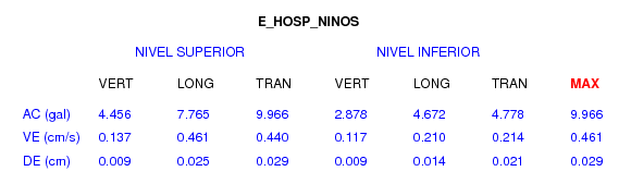 En esta sección se muestran los registros de aceleración (ac), velocidad (ve) y desplazamiento (de) de los niveles superior e inferior de varios edificios que se encuentran conectados al LIS ( http://www.estructuras.lis.ucr.ac.cr )