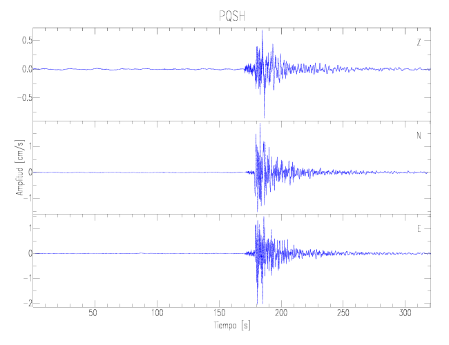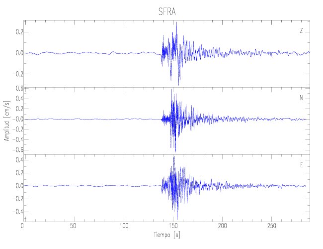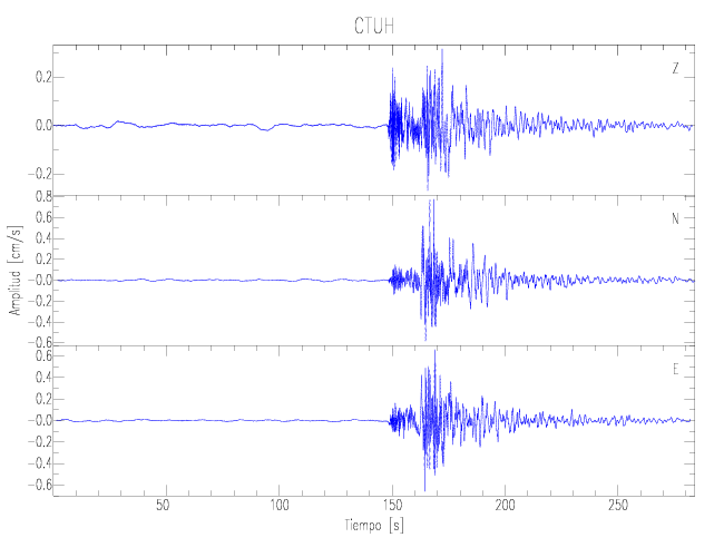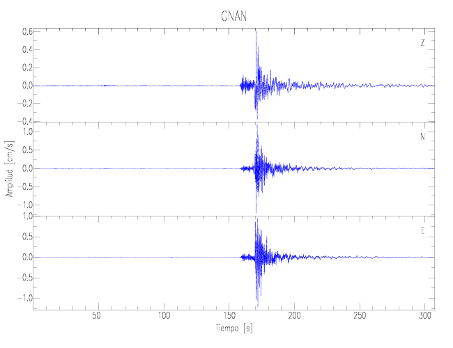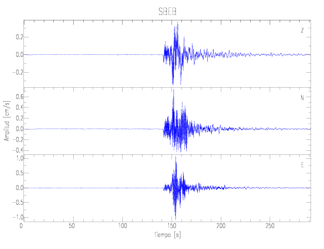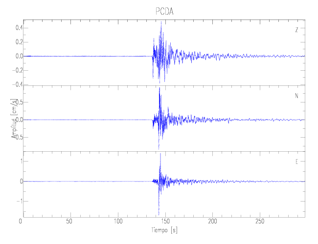 Los registros de velocidad se obtienen de la integración de los datos de aceleración. Esta tabla contiene los valores de velocidad máxima (PGV por sus siglas en inglés) para cada componente en cm/s. Las estaciones se listan en orden alfabético y corresponden a los sitios en que el nivel de aceleración fue superior a los 5 cm/s2.