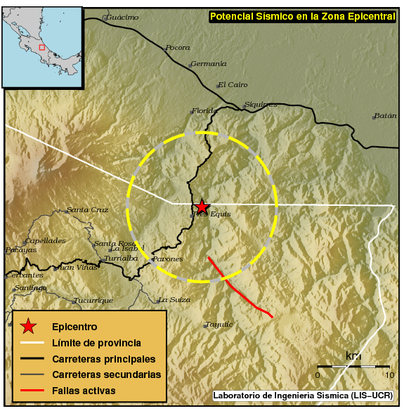A 10km a la redonda del epicentro, el LISUCR ha localizado también los siguientes sismos ocurridos desde el 2010. Todos ellos con profundidades inferiores a los 40km.