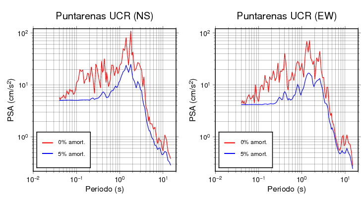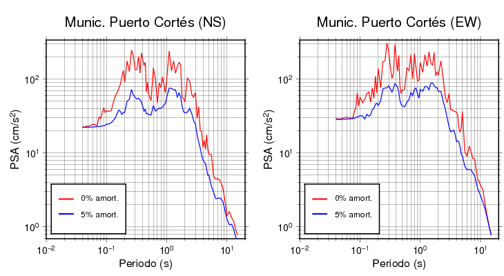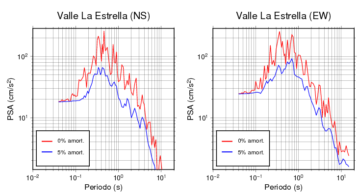 Esta tabla contiene los valores de PSA en cm/s2 calculados del espectro de respuesta con 5% de amortiguamiento a 1 segundo (se muestran los valores para aquellas estaciones que tuvieron un valor de aceleración superior a 5 cm/s2).