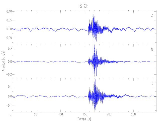 Los registros de velocidad se obtienen de la integración de los datos de aceleración. Esta tabla contiene los valores de velocidad máxima (PGV por sus siglas en inglés) para cada componente en cm/s. Las estaciones se listan en orden alfabético y corresponden a los sitios en que el nivel de aceleración fue superior a los 5 cm/s2.