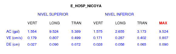 En esta sección se muestran los registros de aceleración (ac), velocidad (ve) y desplazamiento (de) de los niveles superior e inferior de varios edificios que se encuentran conectados al LIS ( http://www.estructuras.lis.ucr.ac.cr )