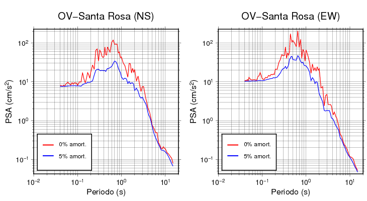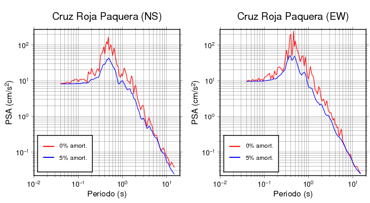 Esta tabla contiene los valores de PSA en cm/s2 calculados del espectro de respuesta con 5% de amortiguamiento a 1 segundo (se muestran los valores para aquellas estaciones que tuvieron un valor de aceleración superior a 5 cm/s2).